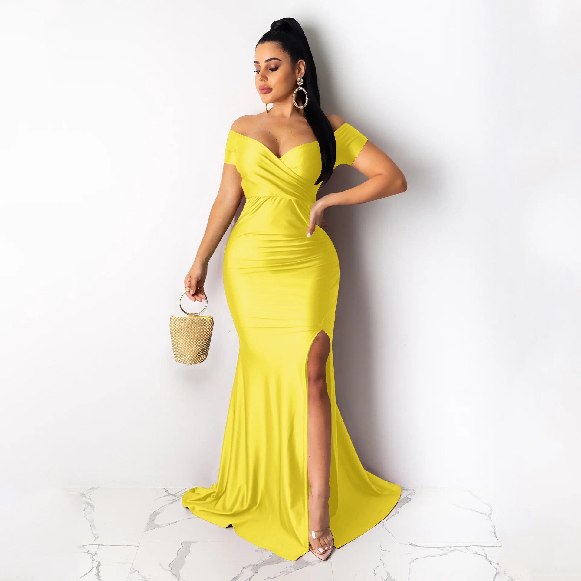 Regular price From $57.99 USDSale price From $57.99 USD Regular priceUnit price per$0.00 USDSale Sold outSPECIFICATIONSBrand Name: YOZIHAYLElasticity: Medium StrecthSleeve Style: Off The ShoulderFabric Type: Chemical FiberHign-concerned Chemical: NonePattern Type: SolidFit Type: SlimSilhouette: Trumpet / MermaidNeckline: V-NeckDecoration: DrapedStyle: Original DesignDresses Length:...