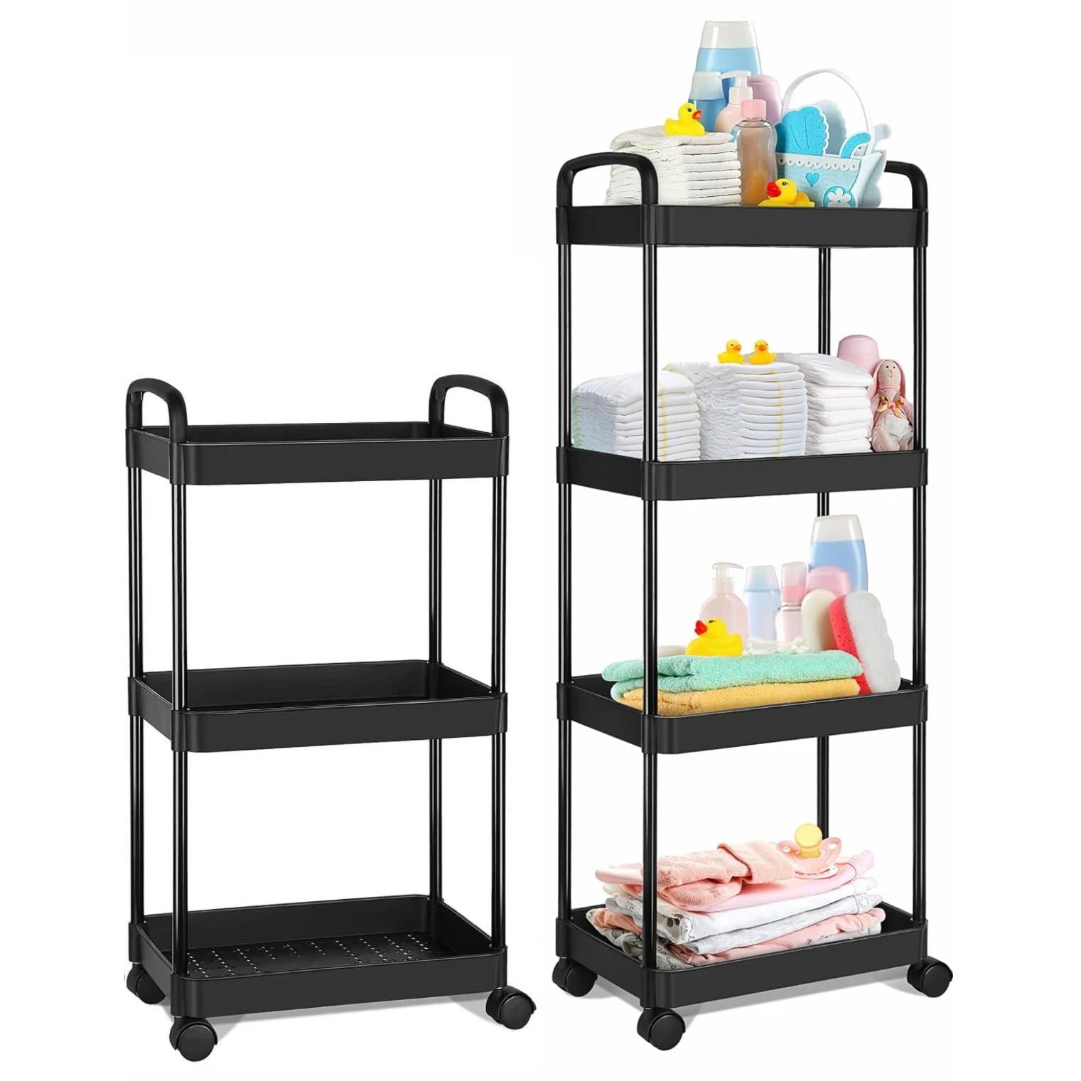 Plastic Rolling Utility Cart with Handle Storage Trolley for Office, Living Room, Kitchen, Movable Storage Organizer with Wheel